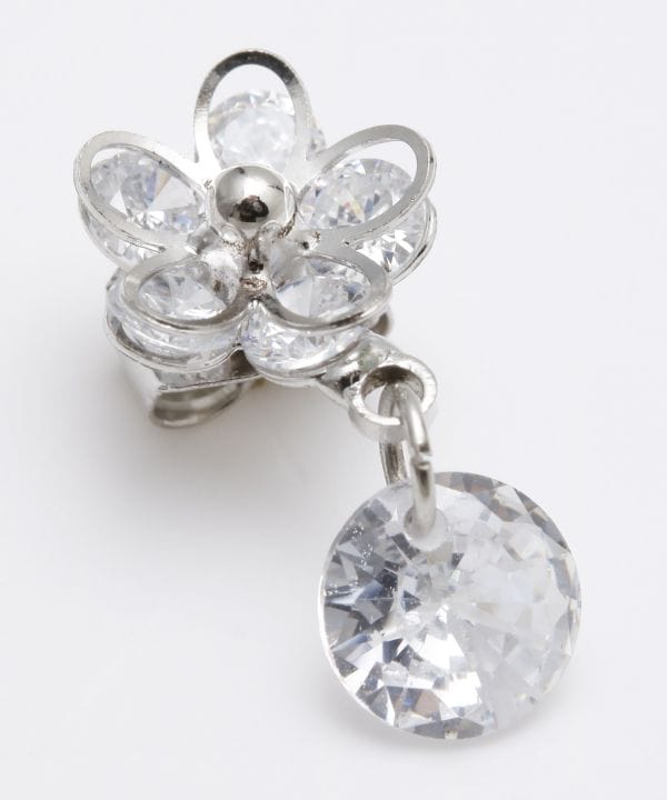 キラキラのラインストーンで表現されたプルメリアが目を惹くピアス。プルメリアには、「大切な人の幸せを願う」という意味が込められています。