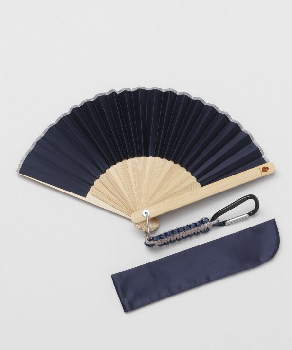 落ち着いた色合いが上品な、シンプルデザインの扇子です。付属の紐にはカラビナが付いており、バッグやショルダーに取り付けて持ち運ぶことができます。外出時にもさっと取り出せる便利な仕様で、専用の収納袋付き。竹の扇骨と綿の扇面が生み出すやわらかな風が心地よい、普段使いにぴったりな扇子です。