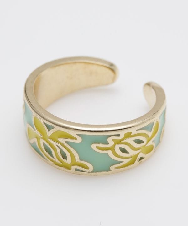 大海の守り神とされるホヌをあしらったトゥーリング。自然を思わせるアースカラーが足先にやさしくなじみます。トゥーリングとしてはもちろん、ピンキーリングとしても使えるデザイン。日常にお守りのように身に着けたいハワイアンモチーフです。