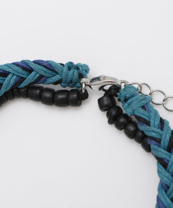 太めに編み上げたコードと大ぶりビーズが印象的なアンクレット。ボード型チャームに刻まれたsurfの文字が、サーフカルチャーの雰囲気を高めます。存在感のあるデザインで足元のアクセントに。