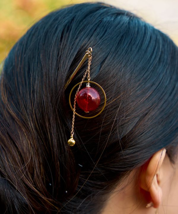 色とりどりの水ヨーヨーをモチーフにしたかんざし。夏らしい透明感のある水ヨーヨーを、ガラスで表現しました。夏のイベントやおでかけにぴったりのアクセサリーです。