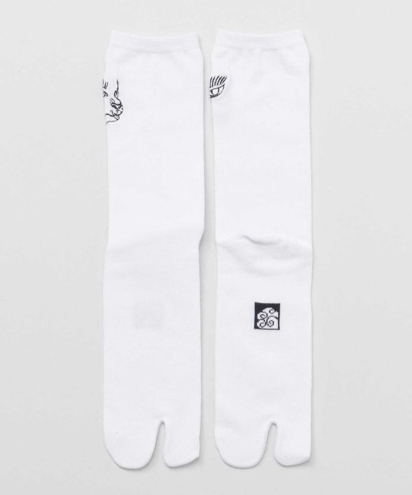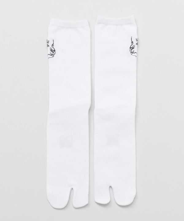 【石黒亜矢子×倭物やカヤ】化け猫や妖怪などを主題に国内外で個展を開催、絵本作家・絵描きとして活躍されている石黒亜矢子氏とのコラボ商品。サイドに猫の刺しゅうが施された遊び心溢れる一足。足袋特有の履き心地。古くて新しい奈良の靴下です。