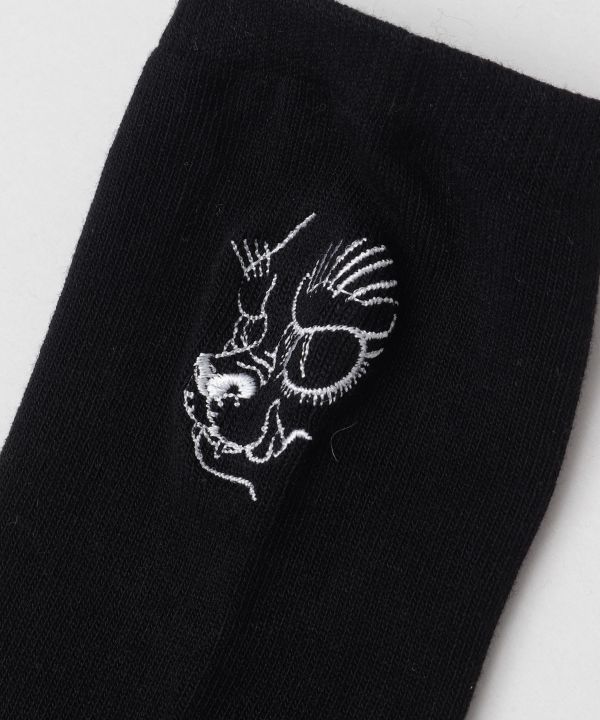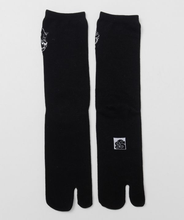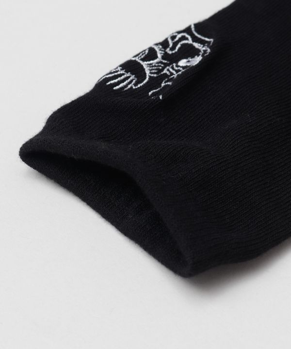 【石黒亜矢子×倭物やカヤ】化け猫や妖怪などを主題に国内外で個展を開催、絵本作家・絵描きとして活躍されている石黒亜矢子氏とのコラボ商品。サイドに猫の刺しゅうが施された遊び心溢れる一足。足袋特有の履き心地。古くて新しい奈良の靴下です。