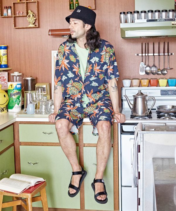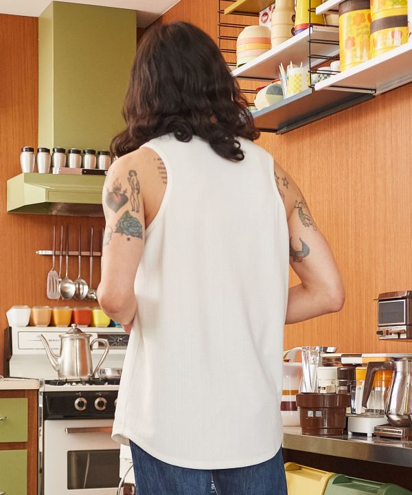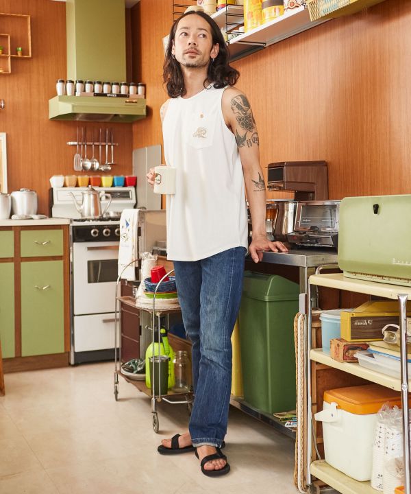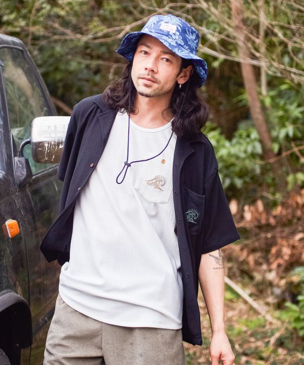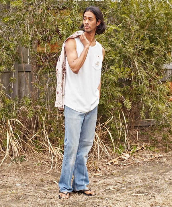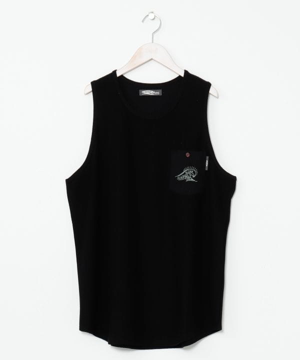 乾きやすいポリエステル素材柄カットソーのメンズタンクトップ。サーフィンをした海上がりにさらっと着るようなラフでオシャレなデザインで、サーファーファッションにもピッタリ。ユニセックスで着用していただけます