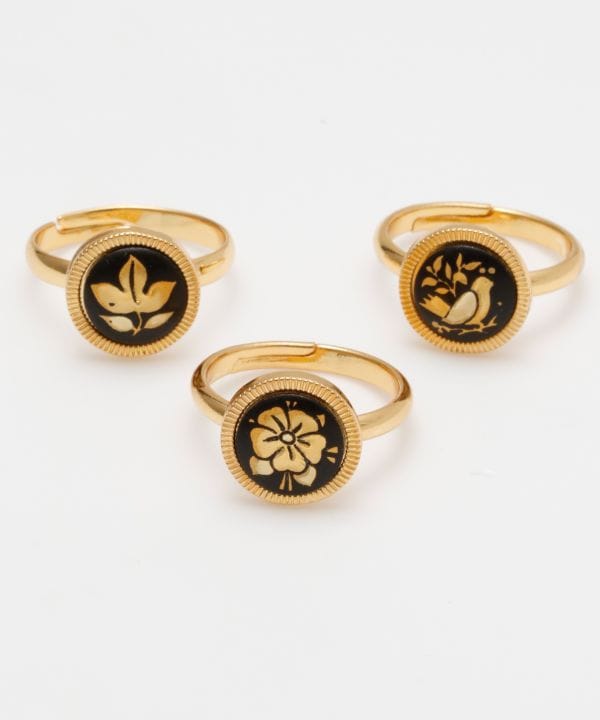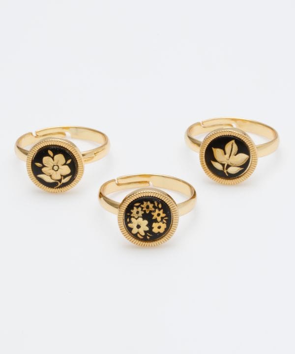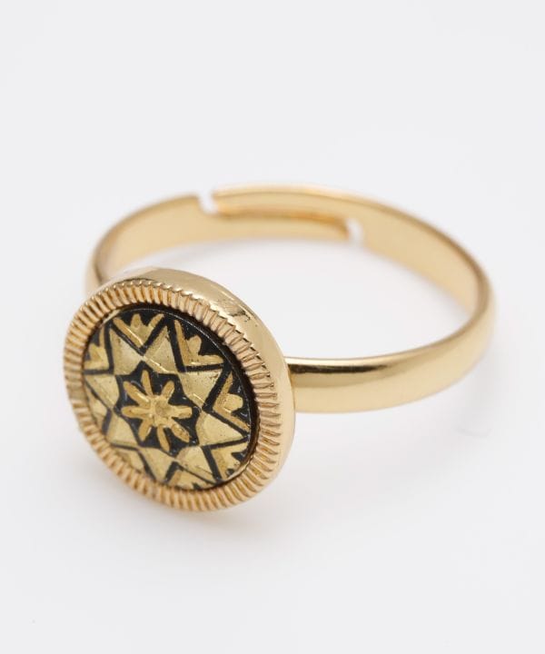 スペインとイスラム文化の融合により生まれた、スペイン・トレド地方の伝統工芸「ダマスキナード」のアクセサリーシリーズ。古く15世紀頃にはトレドの文化として根付いていたといわれています。模様には幾何学模様や草花、動物のモチーフが多くあしらわれ、その美しく繊細な技術には職人の腕と歴史を感じられます。女性の指に収まる小ぶりなデザインはどんな装いにもそっと華を添えます。使いやすいサイズ調整可能なリングです。