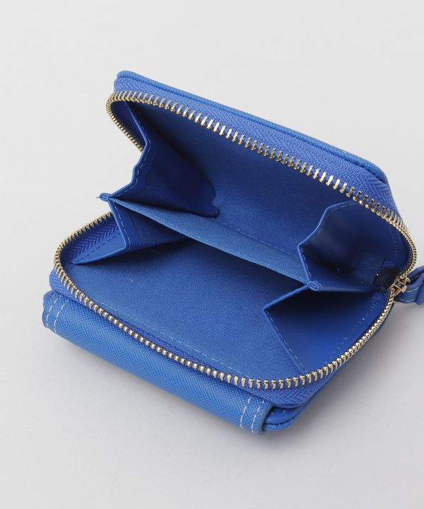 手のひらサイズの三つ折り財布。モンステラやヤシの葉が描かれ、ゴールドとマッチした可愛いデザイン。カード収納ポケットも複数ある優秀なミニ財布です。