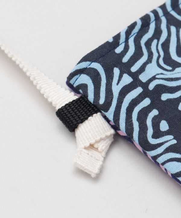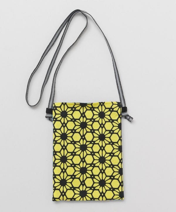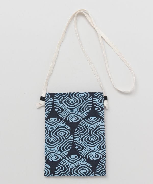 日本の伝統的な技法で染めた「注染手拭」を使用したショルダーバッグ。ショルダー部分には真田紐、柄は北斎模様より抜粋。オールジャパンメイドの、こだわりが詰まったアイテムです。表と裏で異なったデザイン。内ポケット付き。
