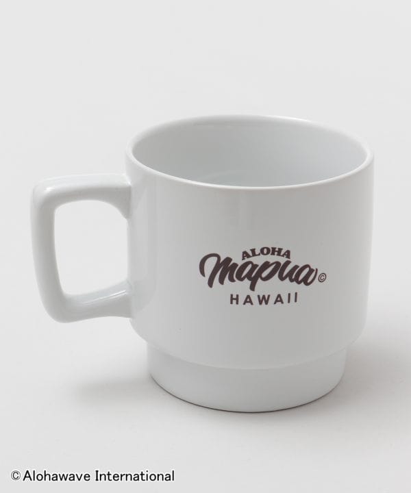 【Kahiko×Aloha Mapua】サーフィンとファッションをこよなく愛するキャラクター「Aloha Mapua (アロハマプア)」のマグカップ。収納にも便利なスタッキングタイプ。可愛いデザインで朝の日差しを浴びながらモーニングコーヒーなどはいかがでしょうか。