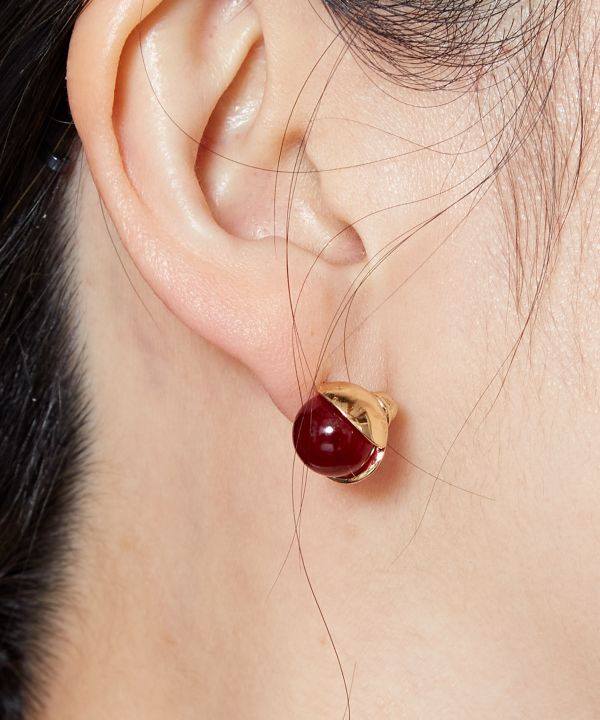 夏の夜の風物詩、蛍が光を放つ様子を表現したピアス。モチーフには半貴石を使用。角度によって色合いが変わります。縁の繋がりを意味する七宝柄の刻印パーツを組み合わせました。