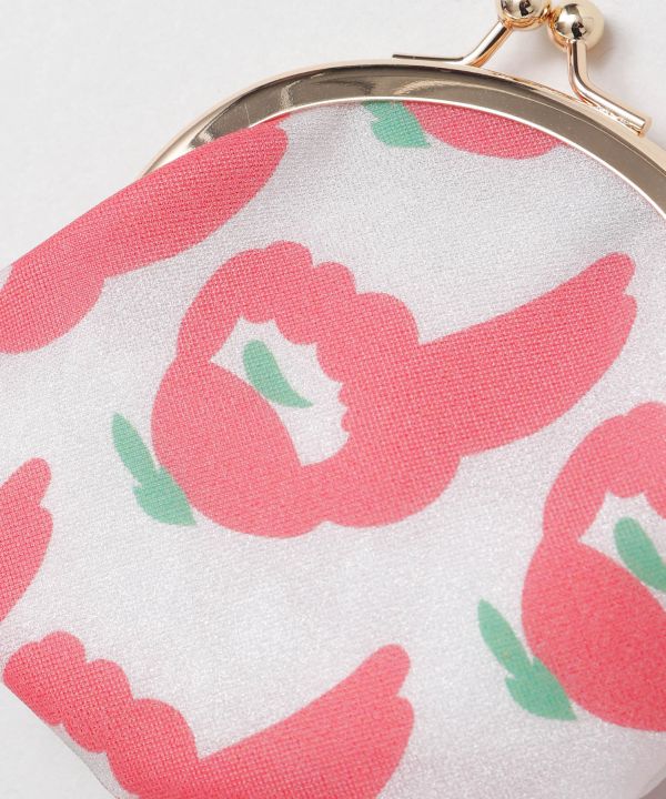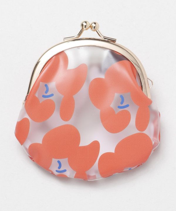 日本の伝統工芸品、こけしに描かれる花柄からインスパイアされた、こけし柄シリーズ。小銭入れや小物入れに丁度良いサイズの小さながま口。可愛らしい花の柄が心をくすぐる。ビニール素材なので少しの水なら拭きとって使用できます。