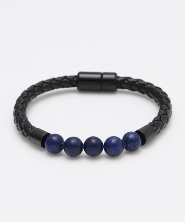 レザー調で高級感あふれるデザインが魅力の天然石ブレスレット。マグネットなので着脱がしやすく、様々なコーディネイトのワンポイントとして大活躍間違いなしです。
