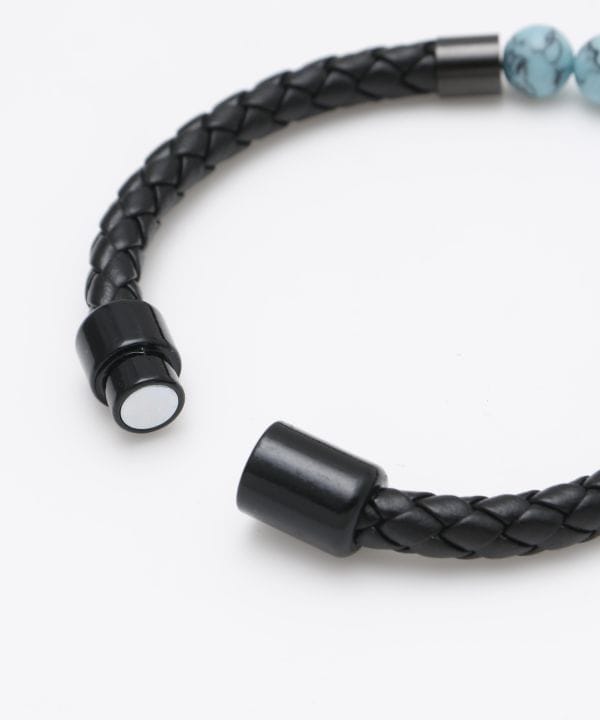 レザー調で高級感あふれるデザインが魅力の天然石ブレスレット。マグネットなので着脱がしやすく、様々なコーディネイトのワンポイントとして大活躍間違いなしです。