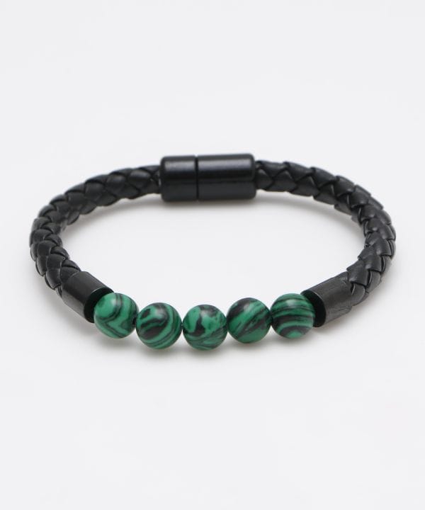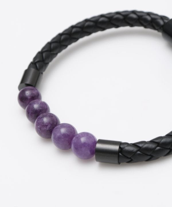 レザー調で高級感あふれるデザインが魅力の天然石ブレスレット。マグネットなので着脱がしやすく、様々なコーディネイトのワンポイントとして大活躍間違いなしです。