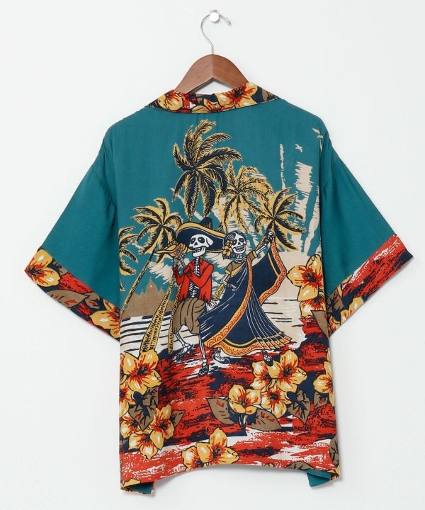 人気モチーフカラベラが南インドに旅をしにやってきた。カーニャクマリの海岸沿い、南インドを代表するジャスミンの花々。そしてガンディーの記念堂。その前で踊るカラベラたち。彼らは南インドの伝統服ルンギやサリーを着て、髪の毛にはジャスミンの花を飾っている。そんなストーリーが込められたこだわりのバックプリントが魅力のシャツ。ゆったりとした身幅とさらっとしたレーヨン素材で、心地よく着られる一枚です。