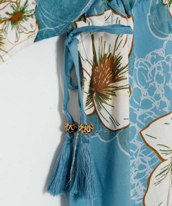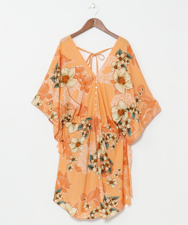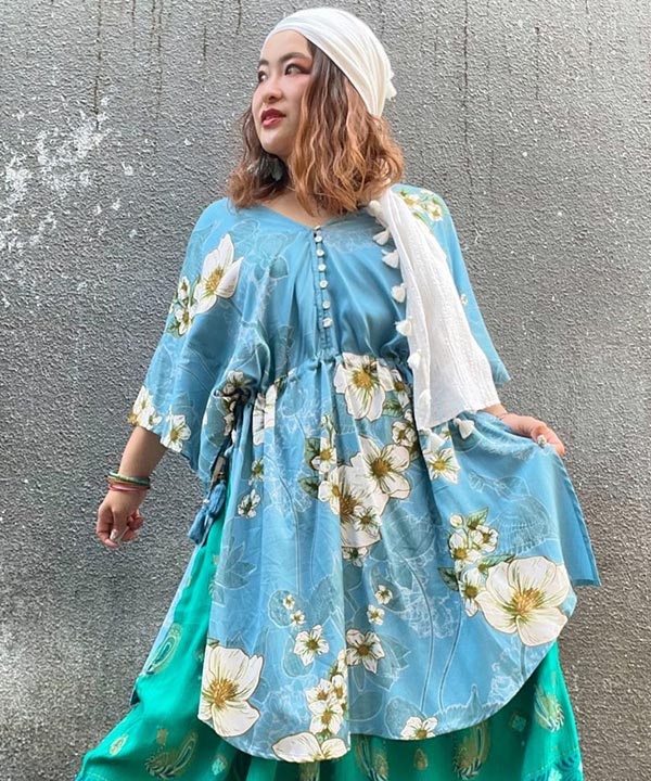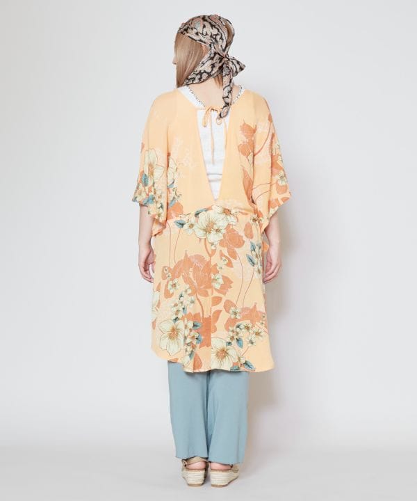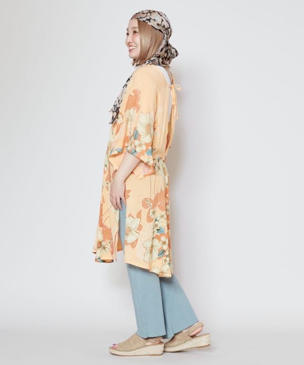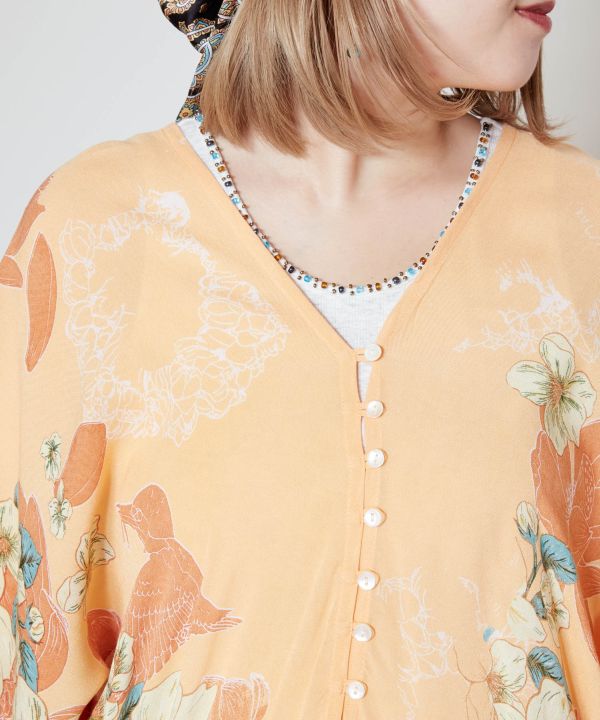 ジャスミンの花の産地、南インド。そこでは多くの女性たちが頭にジャスミンの花を飾り日常を過ごします。そんな風景からインスパイアを受けた、明るい色合いのトップス。薄手のレーヨン素材と前後を大胆に開いたデザインで、インナーとの組み合わせも楽しめます。お尻も隠せる丈感は、美しいシルエットを最大限に引き出します。