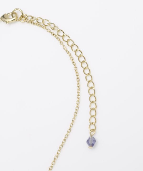 エキゾチックなインドガラスのネックレス。小ぶりな雫モチーフが首元でキラリと輝き、顔周りのさりげないアクセントに。