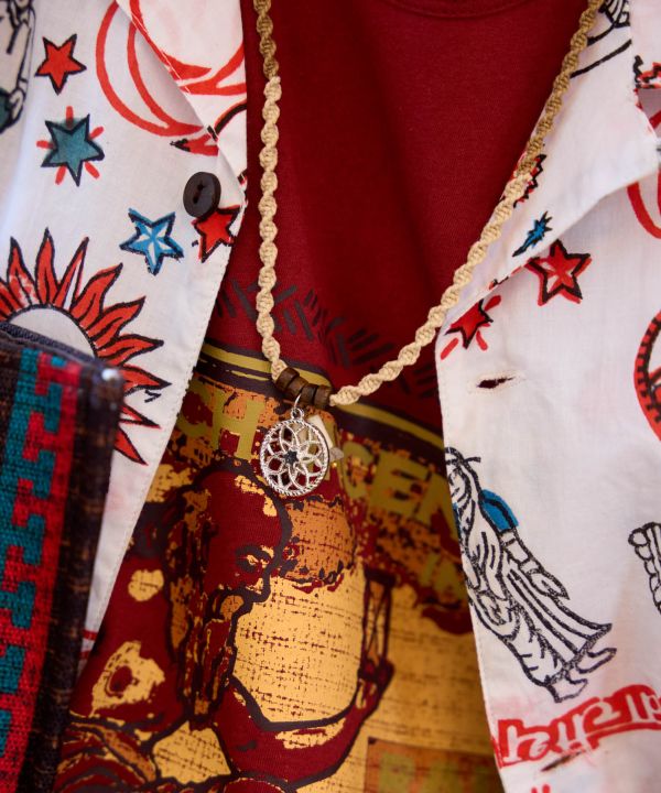 世界各国の幸運を呼び込むお守りが付いたネックレス。紐を引っ張るだけで長さの調整ができるので、デイリーに付けやすくユニセックスで使えるデザイン。