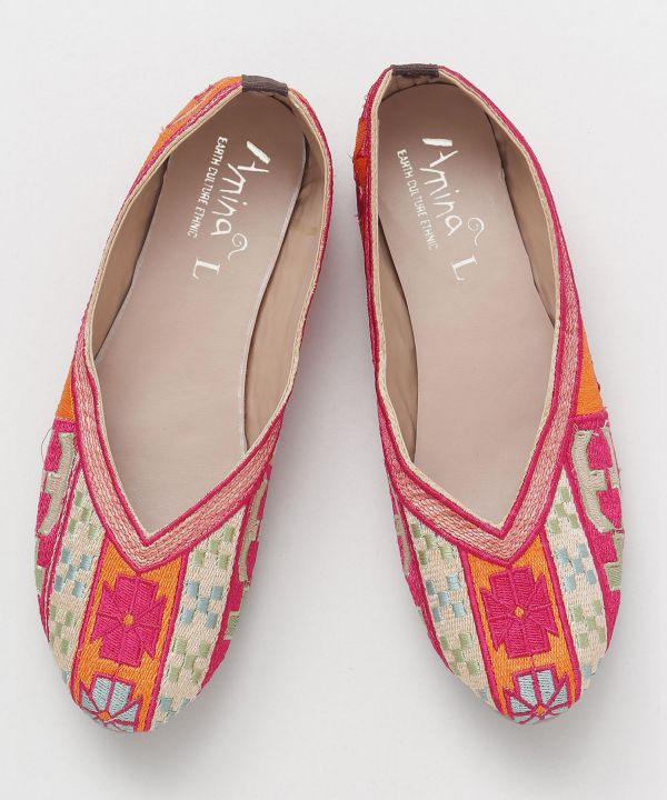 カラフルな刺しゅうで履きやすいジュッティー(ヒンディー語でサンダル)。夏にぴったりな、エキゾチックで華やかな足元に。