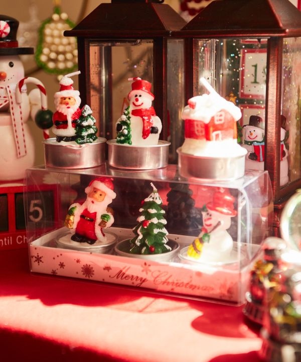 クリスマスモチーフのキュートなキャンドルセット。クリスマスのパーティーにもぴったり。あたたかな明かりがお部屋を明るく灯します。