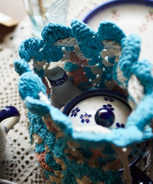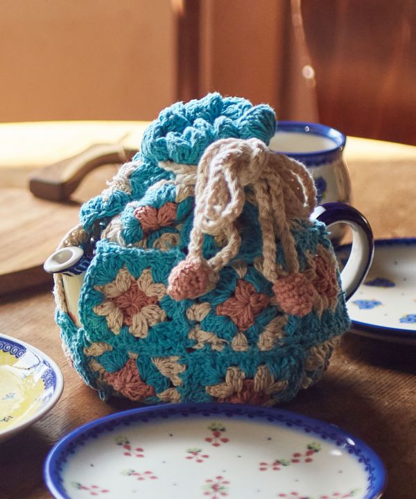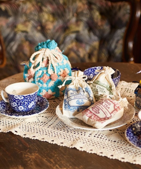 アフタヌーンティーの時間がより楽しくなる可愛らしいポットカバー。カバーをポット口に通して後ろをボタンで留めれば、ポットの飾りにも保温にも使えます。上を結ぶタイプになっているので、カバーをつけたままお湯を入れることもできます。アフタヌーンティーの発祥はイギリスであると云われ、人々の憩いの場として現代にも伝わっています。