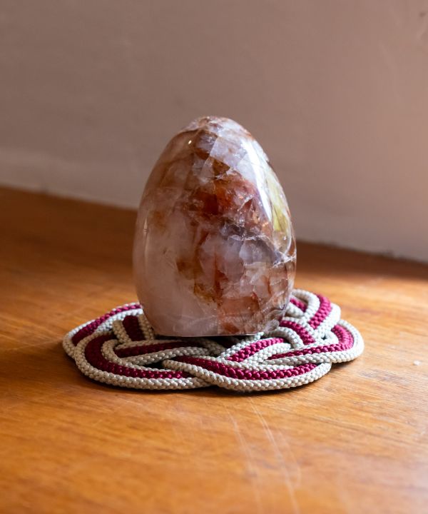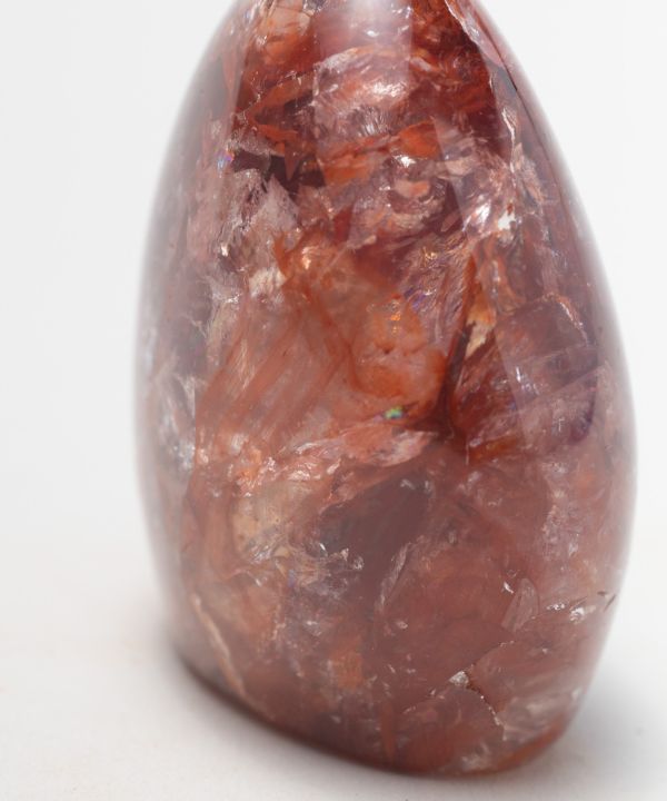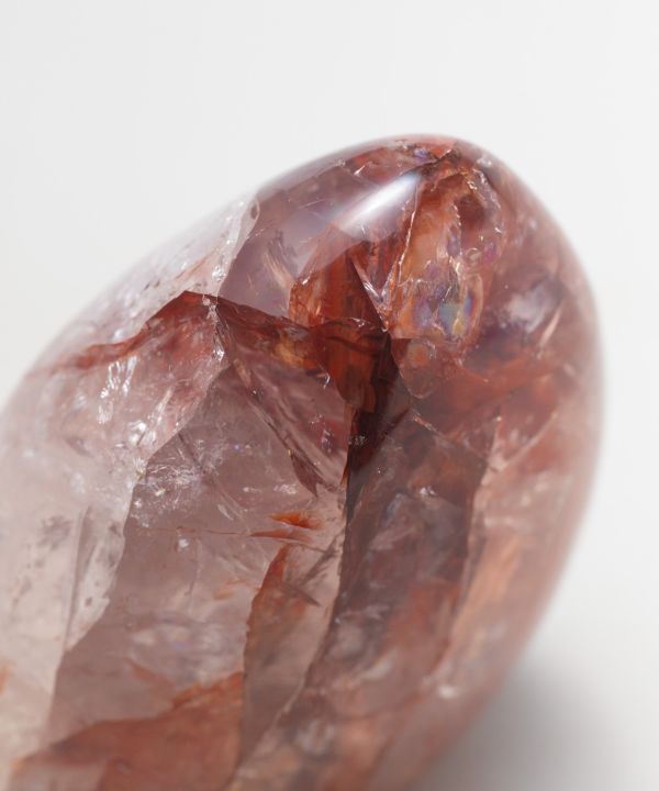 和名で水晶と呼ばれるクォーツにヘマタイトが混入し、酸化したものが内包されています。心を落ち着かせ、物事を適切に処理し整理する能力を高めると云われています。集中力を高め、思考を整理してくれるとも云われることから、クリエイティブな仕事の助けとなるとされています。