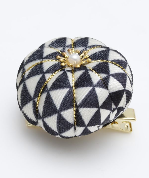 季節の彩りなどを表現する和菓子「練り切り」をモチーフにしたヘアクリップ。ふっくらとしたシルエットとパール風のビーズを使用し、本物の和菓子のような可愛らしさを表現しました。身に付けるだけで、気軽に和の雰囲気を楽しめます。