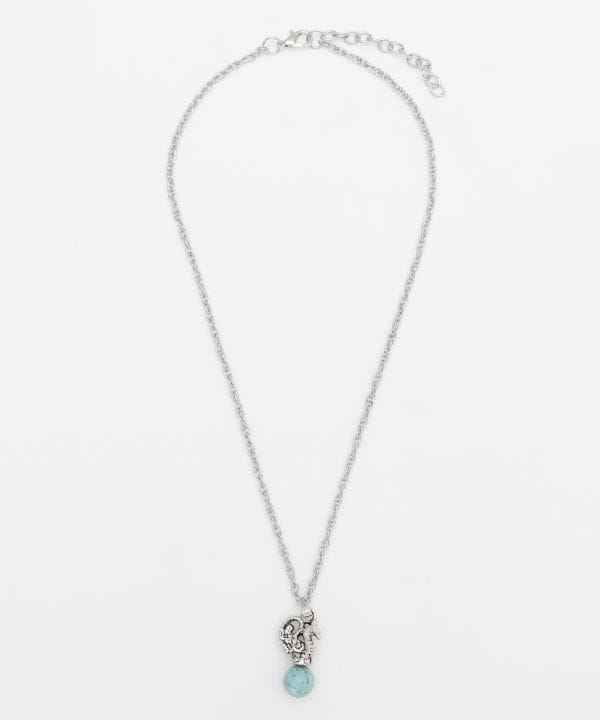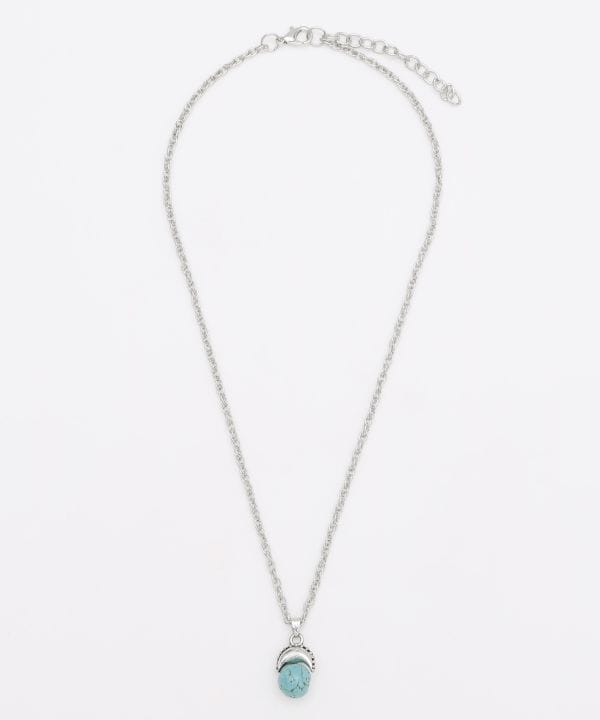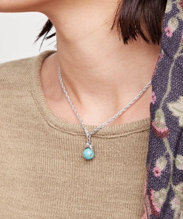 世界中で愛される石、ターコイズを使用したネックレス。行動する勇気を与えてくれる旅のお守りとしておすすめです。メタルのモチーフと石が揺れるデザインはどんなシーンでも活躍してくれること間違いなし。
