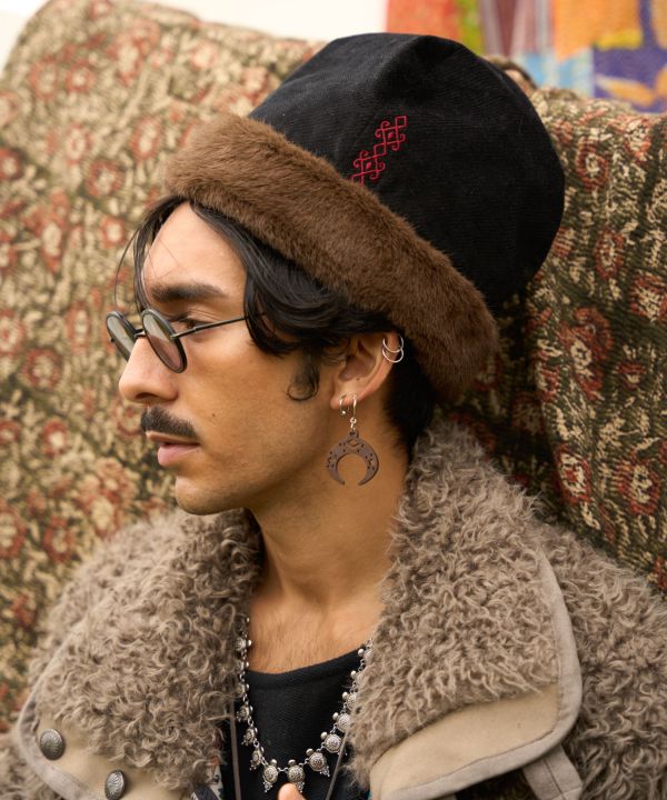 世界の遊牧民が日々の生活で大切にしていることや物、そして肌身離さず身に着けているお守りをモチーフにしたピアス。日々の祈りをアクセサリーに込めて。インパクトのあるモチーフで耳元から個性を放つ。