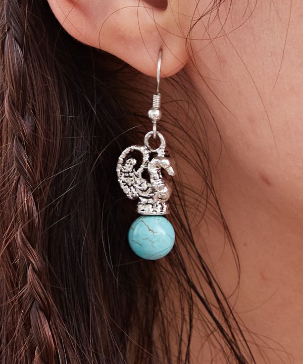 世界中で愛される石、ターコイズを使用したピアス。行動する勇気を与えてくれる旅のお守りとしておすすめです。メタルのモチーフと石が揺れるデザインはどんなシーンでも活躍してくれること間違いなし。