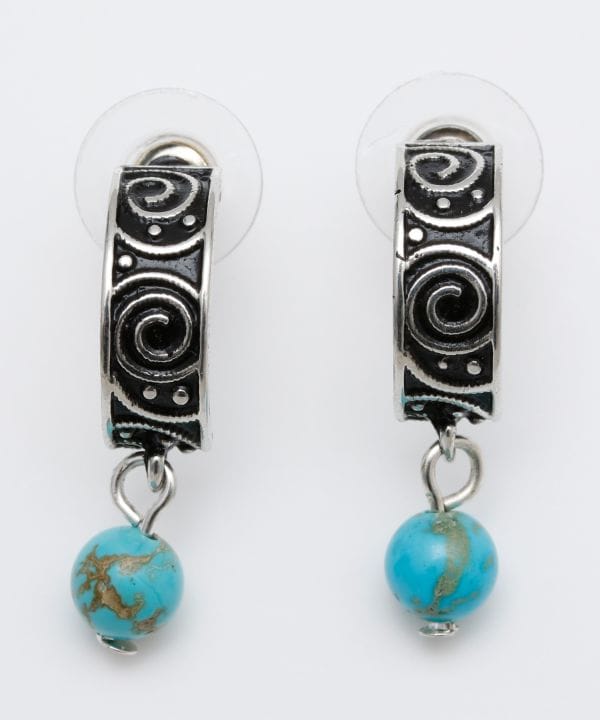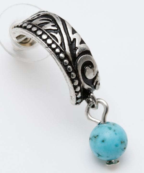 世界中で愛される石、ターコイズを使用したピアス。行動する勇気を与えてくれる旅のお守りとしておすすめです。小ぶりの石が揺れるデザインはどんなシーンでも活躍してくれること間違いなし。