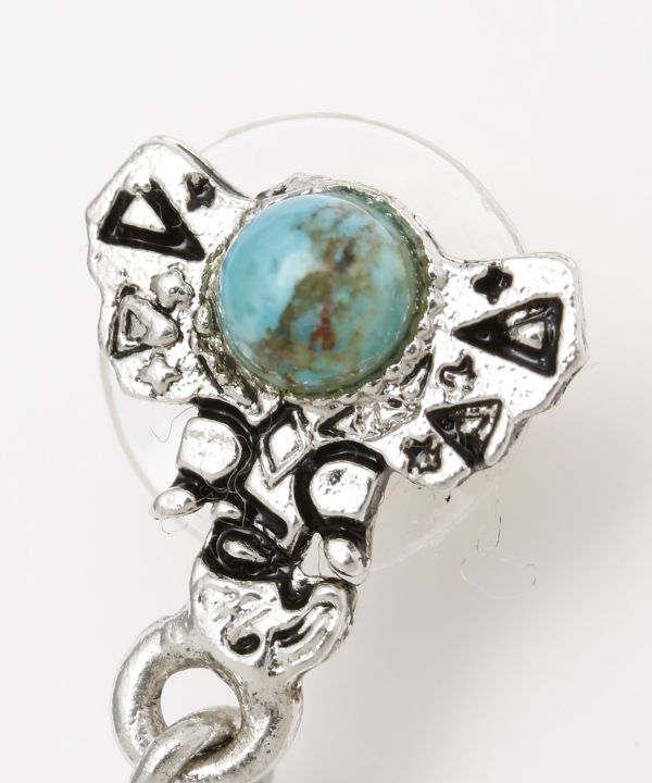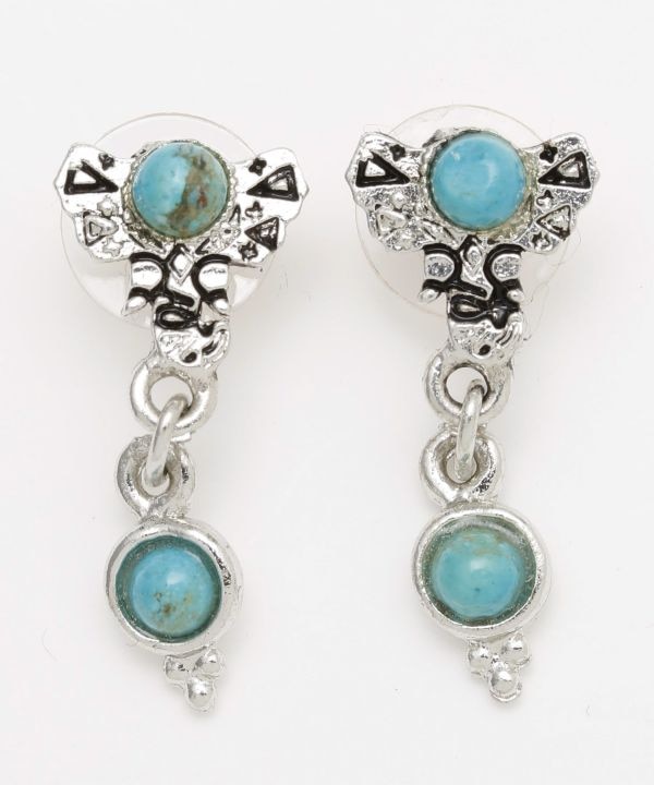 世界中で愛される石、ターコイズを使用したピアス。行動する勇気を与えてくれる旅のお守りとしておすすめです。トライバルモチーフのガネーシャと揺れるストーンのデザインはどんなシーンでも活躍してくれること間違いなし。