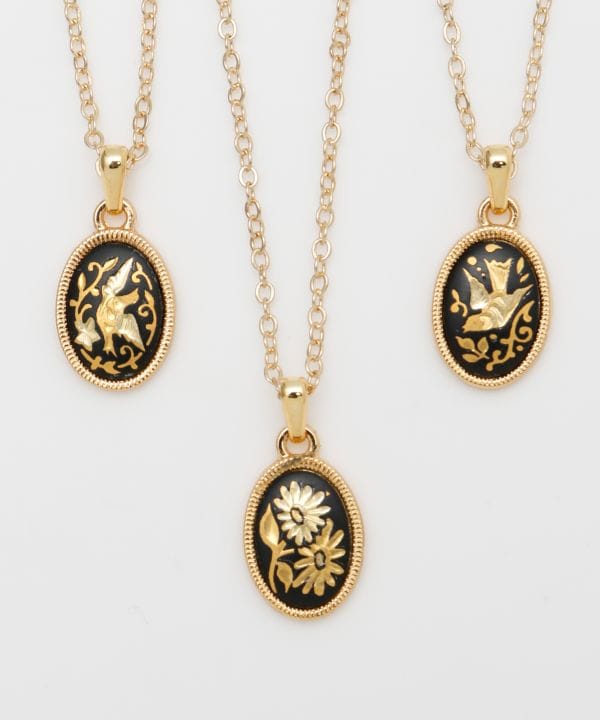 スペインとイスラム文化の融合により生まれた、スペイン・トレド地方の伝統工芸「ダマスキナード」のアクセサリーシリーズ。古く15世紀頃にはトレドの文化として根付いていたといわれています。幾何学や草花、動物モチーフがあしらわれた模様は、美しく繊細で職人の技術や歴史を感じさせる一品です。胸元でキラキラと輝くダマスキナードが装いのワンポイントに。