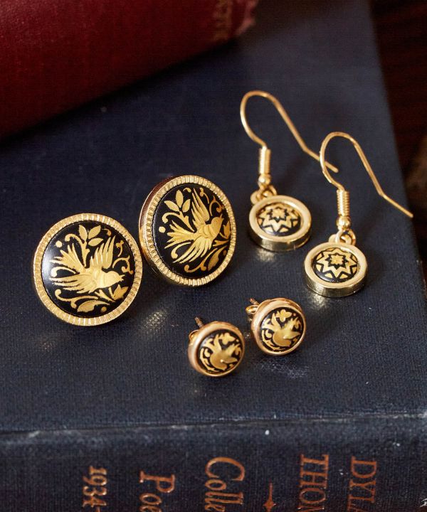 スペインとイスラム文化の融合により生まれた、スペイン・トレド地方の伝統工芸「ダマスキナード」のアクセサリーシリーズ。古く15世紀頃にはトレドの文化として根付いていたといわれています。幾何学や草花、動物モチーフがあしらわれた模様は、美しく繊細で職人の技術や歴史を感じさせる一品です。耳元でキラキラと輝くダマスキナードが装いのワンポイントに。※写真は一例です。