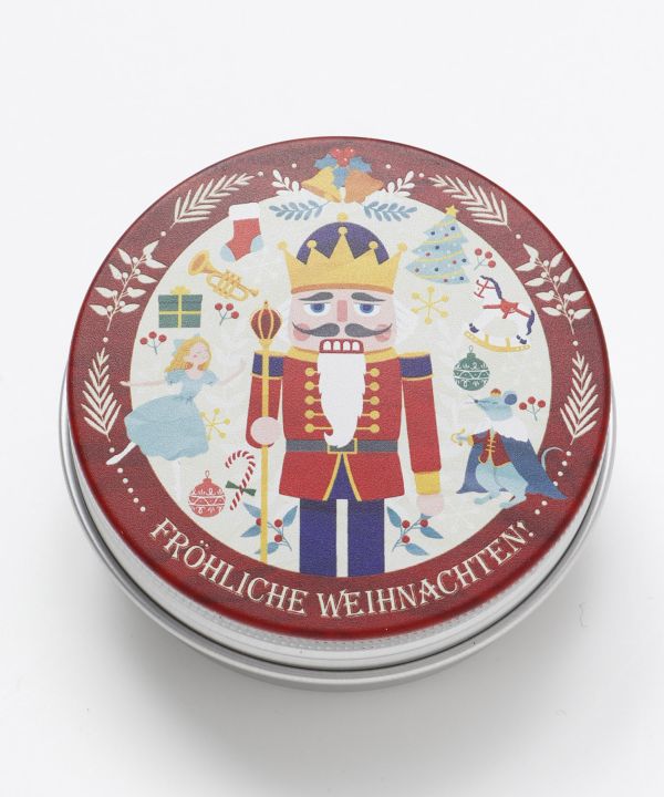 クリスマスのレトロなポスターをプリントした、キャンディー入りの缶。キャンディーのデザインによって異なるフレーバー。SANTA CLAUS/ヨーグルト味、WREATH/ヨーグルト味、NUTS/レモン味、RETRO GIRL/りんご味