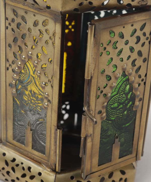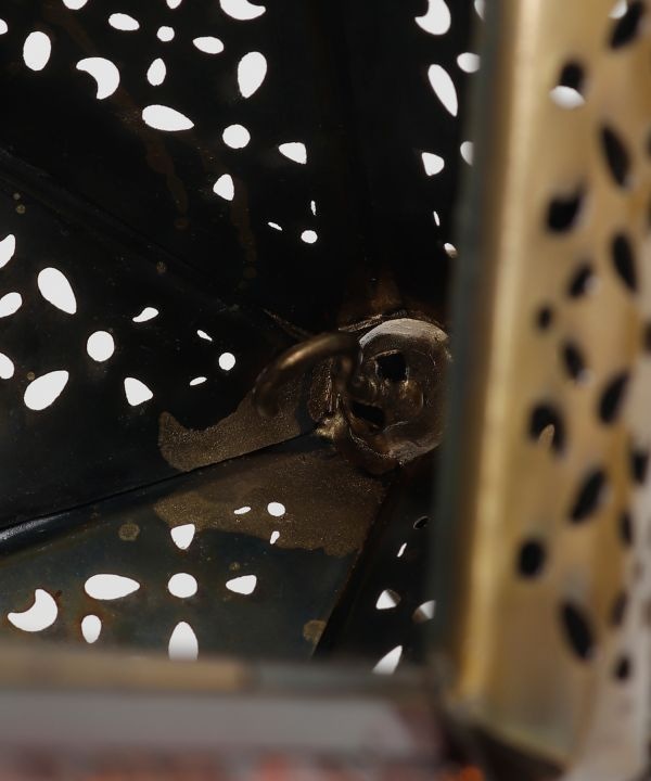 中の上部にフック付で、ミニマライトなどLEDランタンが装着できるエキゾチックなグラスランタンケース。キャンプシーンはもちろん、インテリアとしても空間を彩ります。無地箱つき。