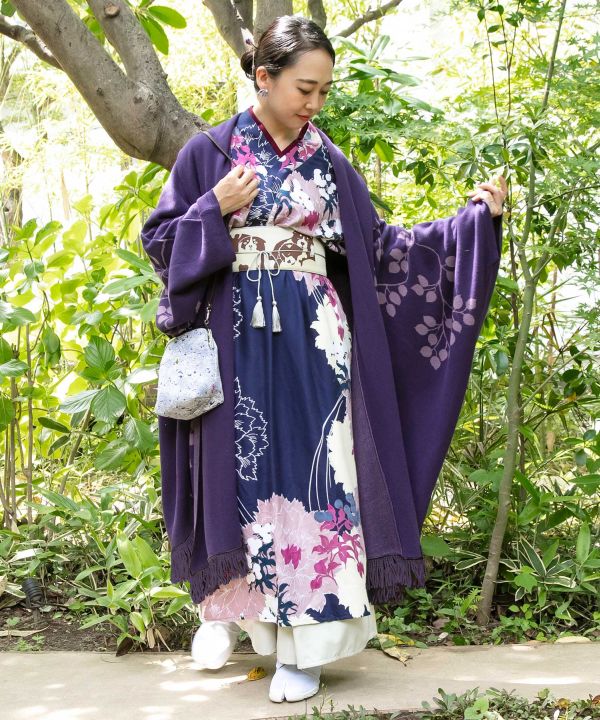 寒い時期に開花を待つ蕾をデザインしたロング丈のニット羽織り。さりげない繊細な蕾柄がバランスよく散りばめられており、普段着に合わせやすい一着。着物や厚手の服の上からでも着ていただけるボリューム感のある羽織りです。