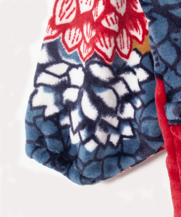 日本の花や浮世絵などのモチーフをデザインした、暖かなブランケット素材の半纏。長袖でしっかり防寒出来ます。便利な前ポケット付き。ふんわりした肌触りで心もリラックスできること間違いなし。ご自身用にはもちろん、大切な方への贈り物にもおすすめです。
