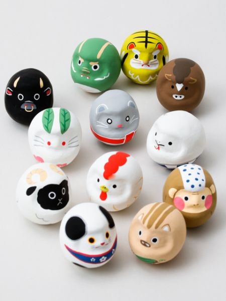 福島県白河の名産品「白河だるま」の干支だるま。手のひらにちょこんと乗るくらいの大きさの愛らしい豆だるまです。十二支の子(ねずみ)がモチーフ。子には【子孫繁栄】の意味があると云われています。神様の使いである十二支。その年の干支を持つと幸運が訪れると云われる縁起物。干支物を飾ることは「家内安全」「商売繁盛」に役立ち、大切な人に贈れば「招福」「長寿」の意味を持つとされています。