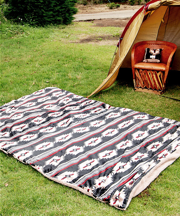 [NOMADY]テントの床に敷いて寝転がれるブランケット。お部屋では、こたつカバーや布団代わりに使える。丸めればクッションとしても使用可能。ふんわりとした肌ざわりで、リラックスタイムや冷房対策にぴったり。デザイン性と機能性を兼ね備えた、実用性の高いアイテムです。