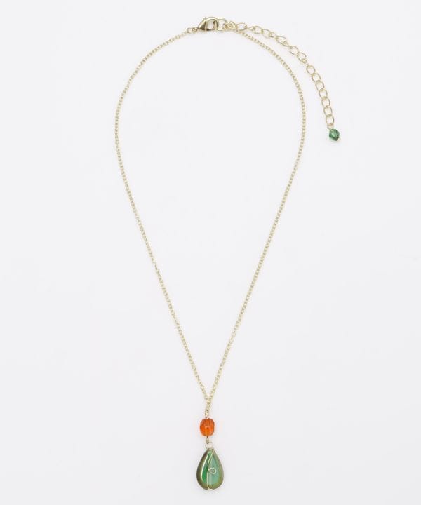 一つ一つ小さなビーズにワイヤーを通して作られた繊細なデザインのネックレス。ビーズとワイヤーワークが織り成す光の世界が、胸元で輝く。