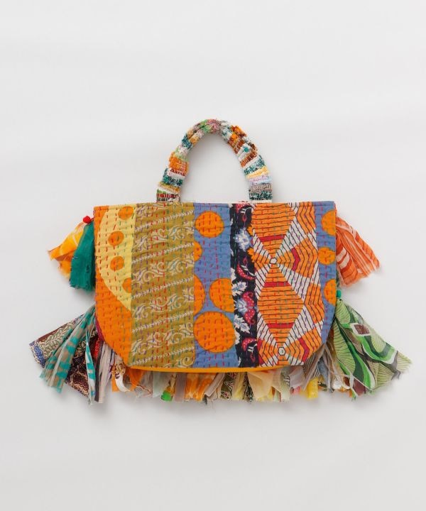 インドのオールドサリーを裂いて織った、オリジナルの裂き織素材が魅力的なミニバッグ。アソートならではの一点ものには出会いあり。マチもあり、見た目以上の収納力があるのも魅力。