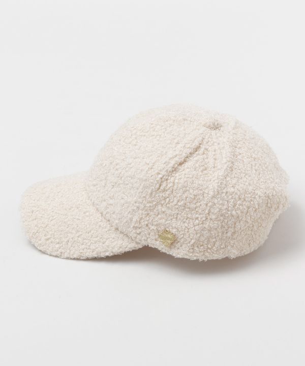もこもこした素材感がかわいいボアキャップ。さっと被るだけでコーディネートに秋冬らしさを演出してくれます。面ファスナーでサイズ調整可能。ポルトガルタイルをイメージしたデザインのメタルチップ付き。