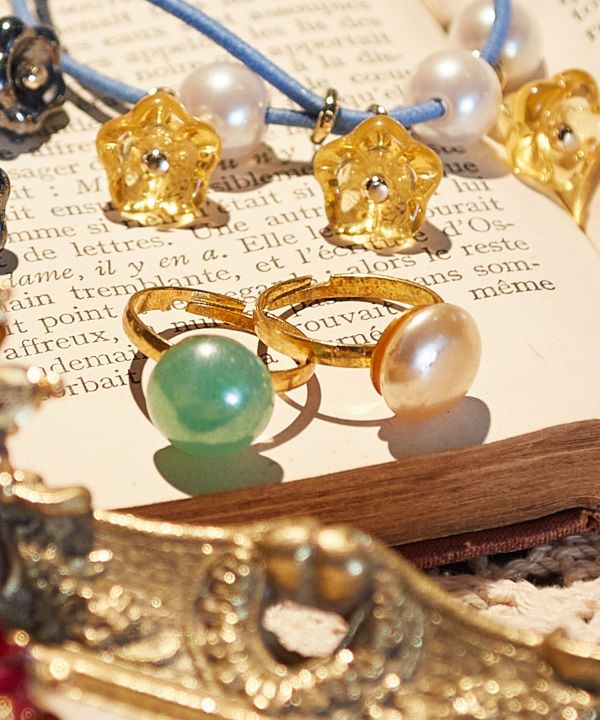 伝統のチェコガラスを使用したシンプルなデザインのリング。どんな洋服にもコーディネートしやすいレトロな雰囲気漂うカラーのリングは、プレゼントにもおすすめです。サイズ調整可能。