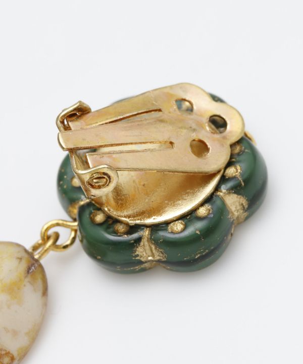 伝統のチェコガラスを使用した存在感のあるイヤリング。大ぶりなお花のパーツが可愛らしく印象的。レトロ感たっぷりのビーズが揺れるデザインは、お顔周りに明るい印象をプラスします。