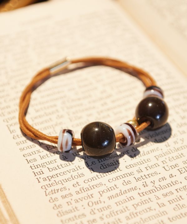 チェコガラスを使用したシンプルで大人っぽいヘアゴム。どんなお洋服にも合わせられる優れもの。ブレスレットとしてもお使い頂けます。