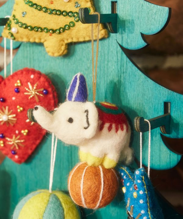 賑やかでわくわくするサーカスをイメージしたクリスマスオーナメント。輪をくぐるライオンや、玉乗りする象、会場を楽しませる気球が、クリスマスのわくわくした気持ちを一層引き立てます※一点一点手作りのため、サイズや柄の出方に個体差がございます。
