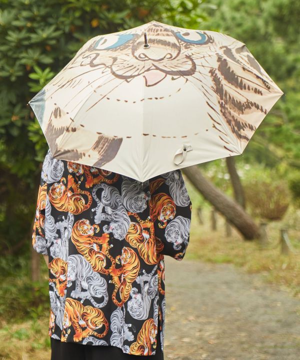 動物の顔を大胆にプリントした日傘。個性をアピールするにはもってこいの柄です。柄はそれぞれ、菊川英山「竹に虎」佐竹永海「風神雷神図」長沢芦雪「牛図」をモチーフにデザイン。ジャンプ式 / 遮光率90%以上 / 晴雨兼用