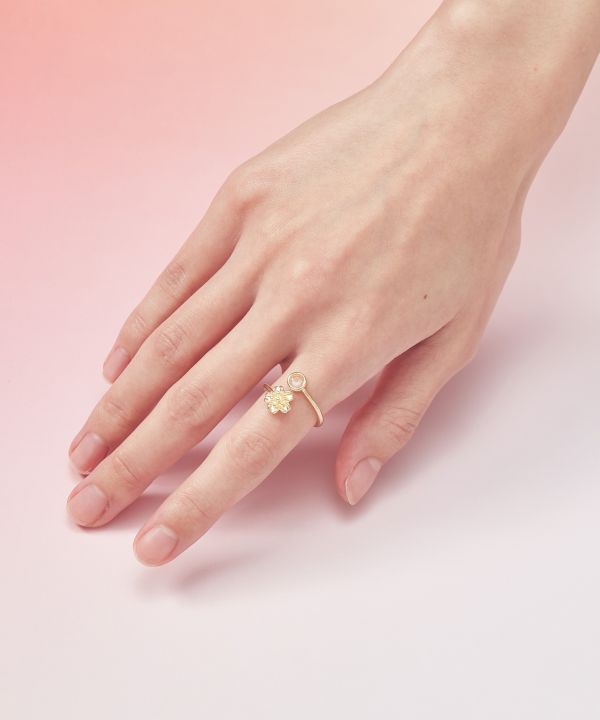 四季に咲く花のモチーフと天然石を組み合わせたリング。■椿/控えめな美徳:ガーネット ■梅/忍耐・忠実・上品・澄んだ心:レインボームーンストーン ■桜/精神美・優れた美人・優秀な女性:ローズクォーツ ■金木犀/気高い人・真実:アクアマリン ■菊/信頼・愛情・清浄・誠実な心:シトリン