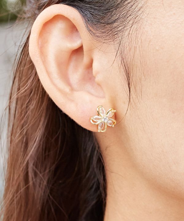 プルメリアのワンポイントピアス。耳元からさりげなく輝くプルメリアで女性らしさを演出してみてはいかがでしょうか。