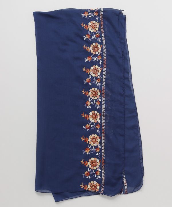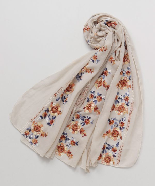 華やかな花の刺しゅうが目を惹く大判ストール。柔らかな大判ストールなので羽織ってもお使いいただけます。ベーシックな色合いでコーデに取り入れやすく、お出かけのお供にぴったり。可愛らしいお花がお顔周りを華やかに演出します。